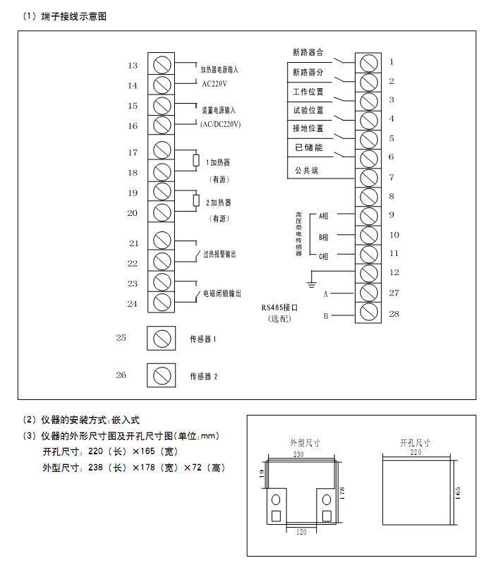 功能描述:柜內(nèi)溫濕度數(shù)碼管顯示及控制、動(dòng)態(tài)模擬顯示圖、語音防誤提示、高壓帶電顯示及閉鎖、遠(yuǎn)方/就地操作、照明操作、分/合閘指示、儲(chǔ)能指示、預(yù)分預(yù)合閃光指示和RS-485通訊接口。